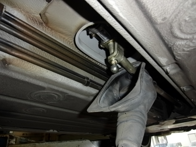 シフトロッドの前後に白いプラスチックのピロボール受けが有ります。
